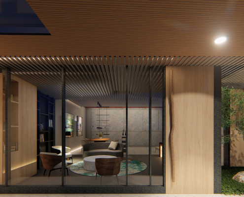 以水平延伸的方式延續至建築,也成為我們主要設計概念的出發點。