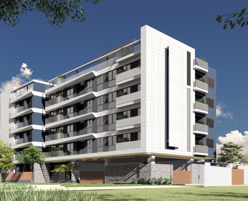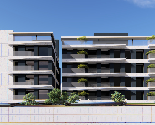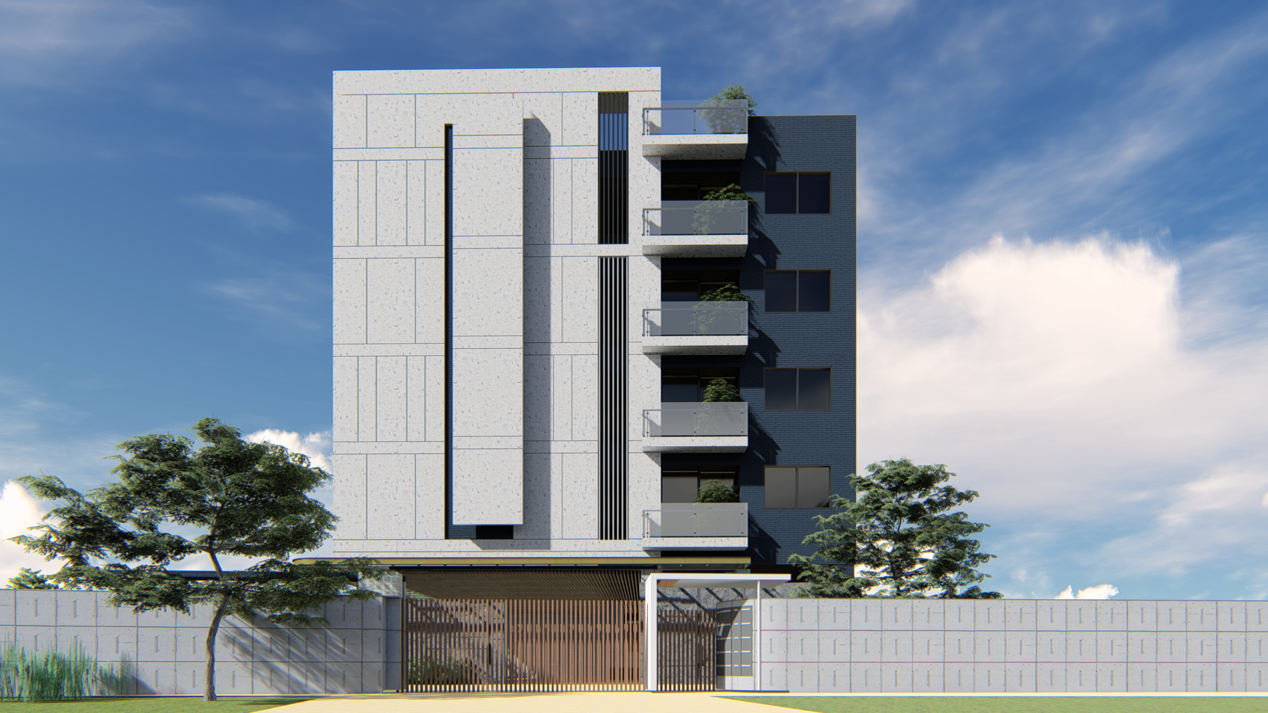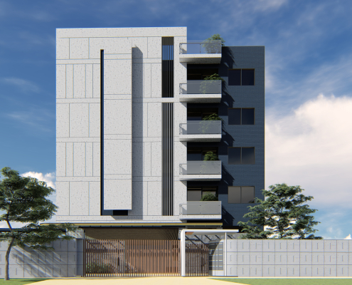 基地位於彰化縣員林市近郊,基地南邊有私人農地種植樹林,形成樹海的效果,所以我們希望建築物可以沿著樹海的波動,